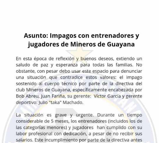 Vía redes sociales se conoció un comunicado en el que jugadores y personal técnico de Mineros de Guayana denuncian que tiene cinco meses sin...