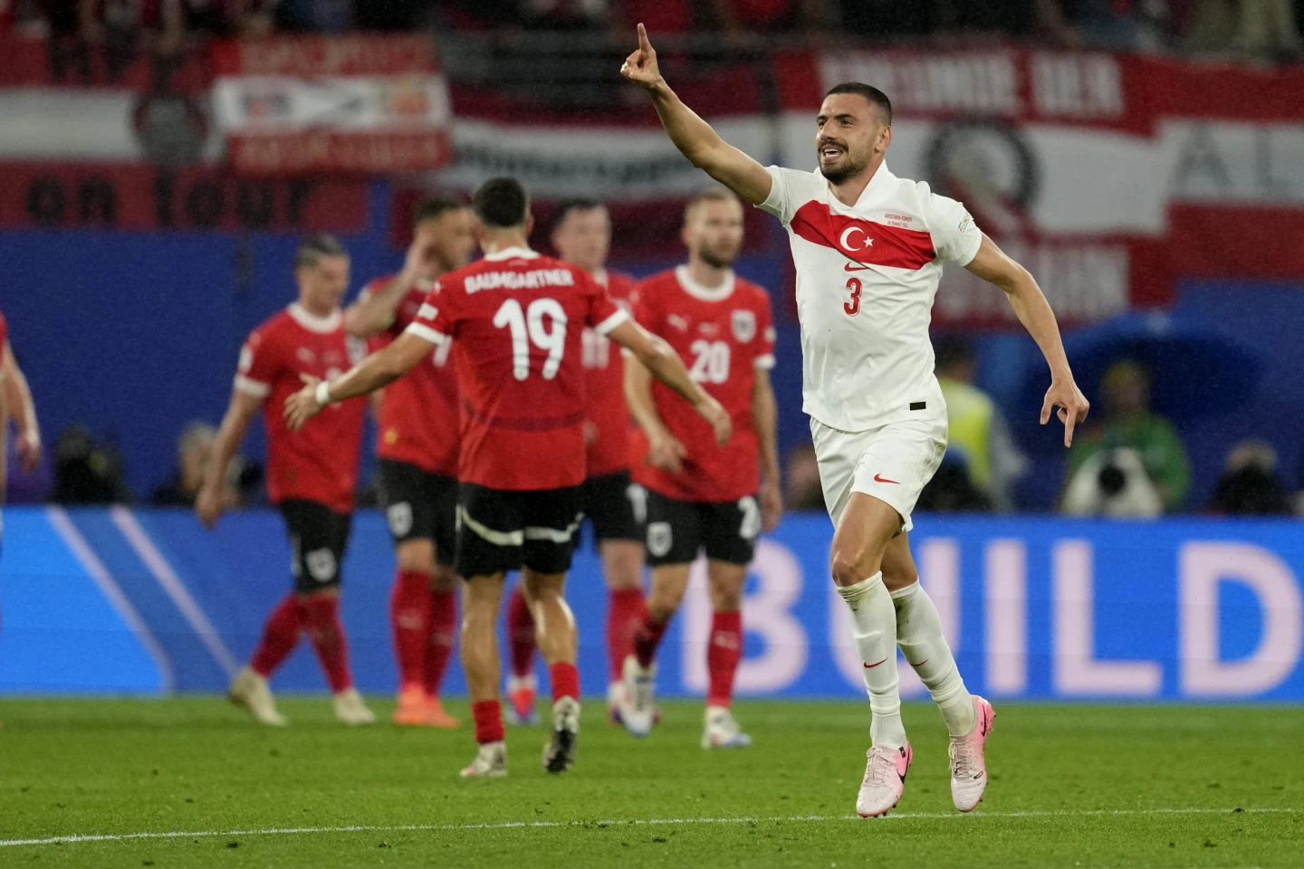 Austria estuvo cerca de responder, pero Demiral de alguna manera hizo lo suficiente para evitar que Baumgartner anotara en la línea.