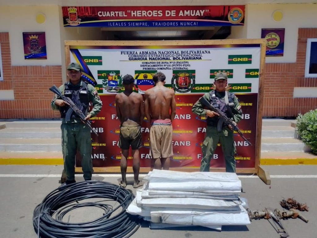 Efectivos de la Fuerzas Armadas Nacionales capturaron a dos sujetos quienes presuntamente habrían ingresado a las instalaciones de la Refinería Amuay a robar materiales, entre ellos cobre.