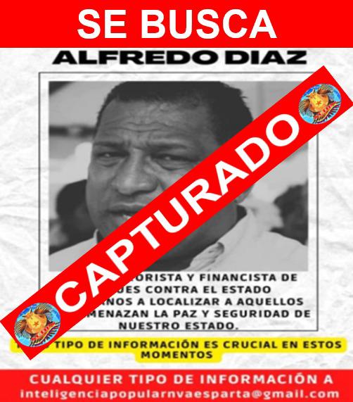 Alfredo Díaz salió desde hace meses de la isla de Margarita, luego de denunciar que era perseguido. Su esposa, Leynys Malavé, informó a través de sus redes sobre esta versión. Además, su hija Daliannys confirmó a través de redes sociales sobre la detención.