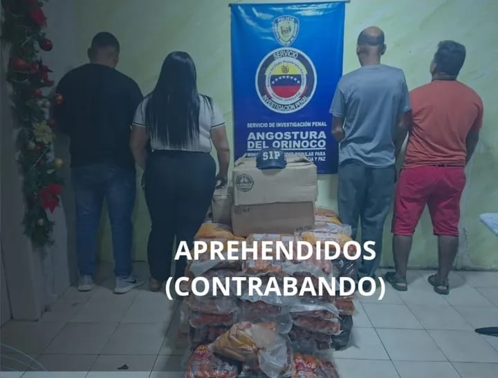 Cuatro personas fueron detenidas por funcionarios de la Policía Municipal de Angostura del Orinoco por el presunto delito de contrabando de alimentos provenientes de la frontera con Brasil.