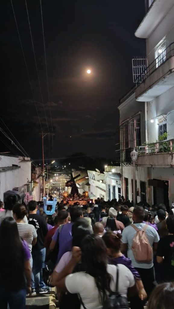 Bajo una hermosa luna los devotos del Nazareno Santo Tomás Apóstol celebraron la procesión del Nazareno en la Catedral Metropolitana Santo Tomás Apóstol (Ciudad Bolívar, Venezuela). Se trata de un acto de profunda devoción durante la Semana Santa.